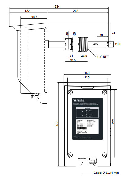 維薩拉水分、氫氣和溫度一體變送器 MHT410(圖1)
